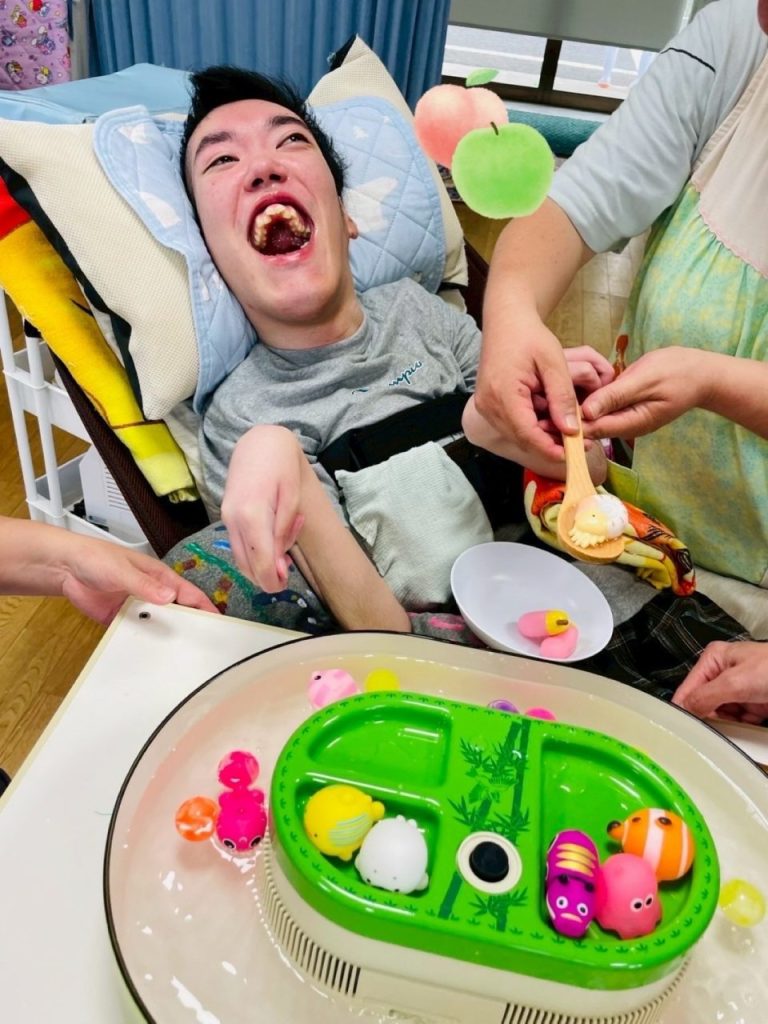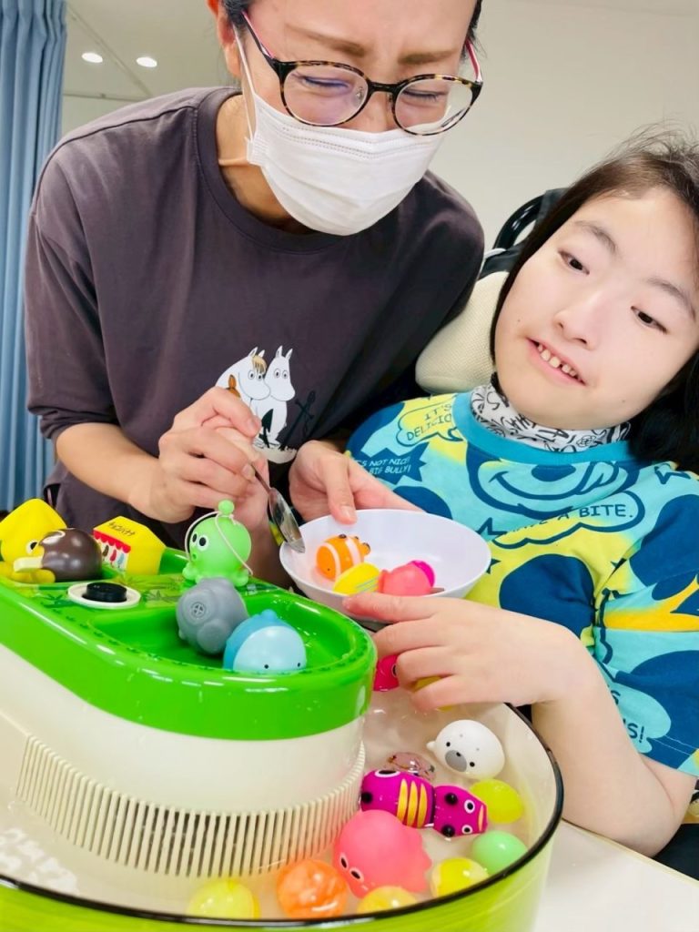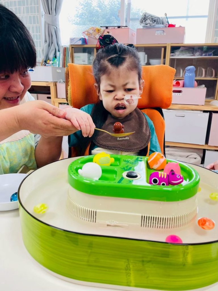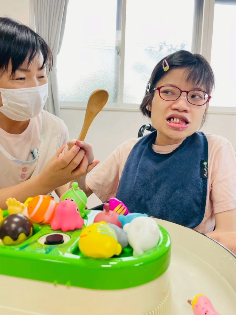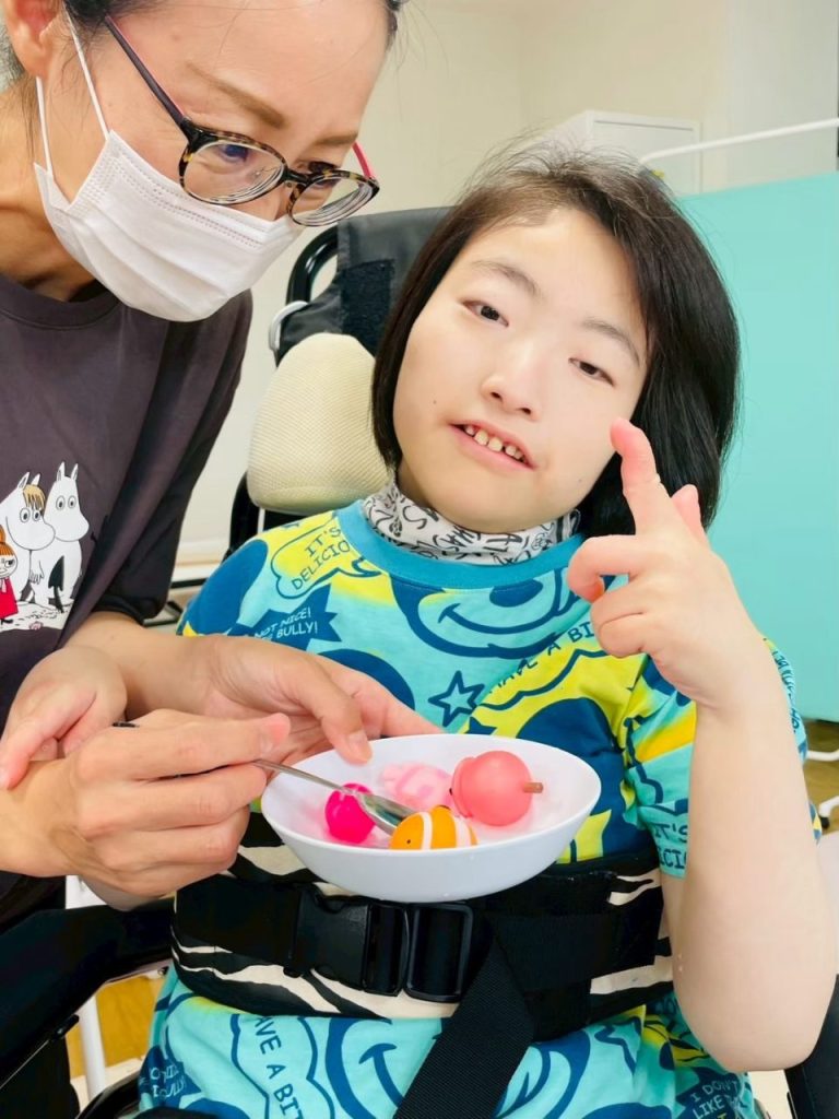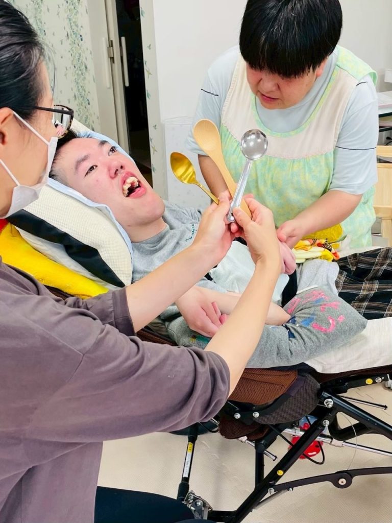 〇〇ちゃんは、右手でスプーンを握りながらすくい上げて♡