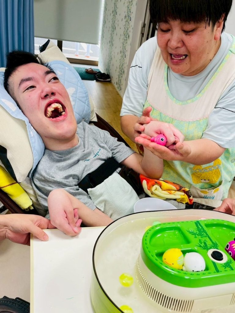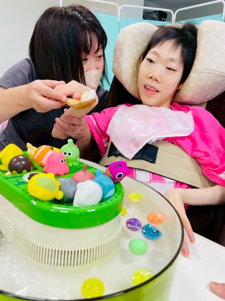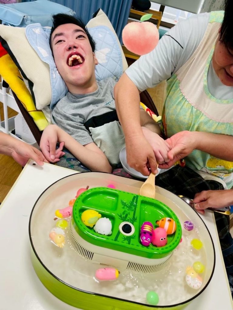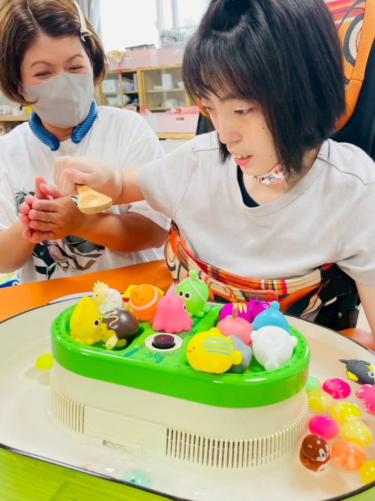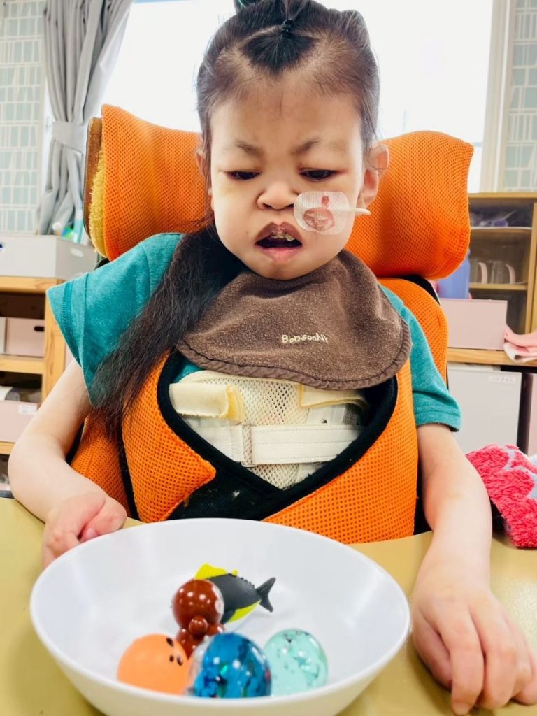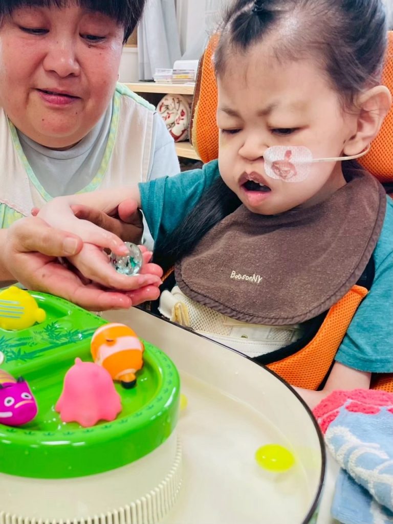 〇〇ちゃんは、右手でスプーンを握りながらすくい上げて♡