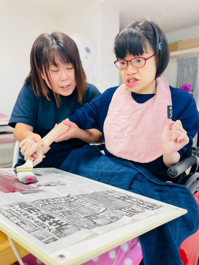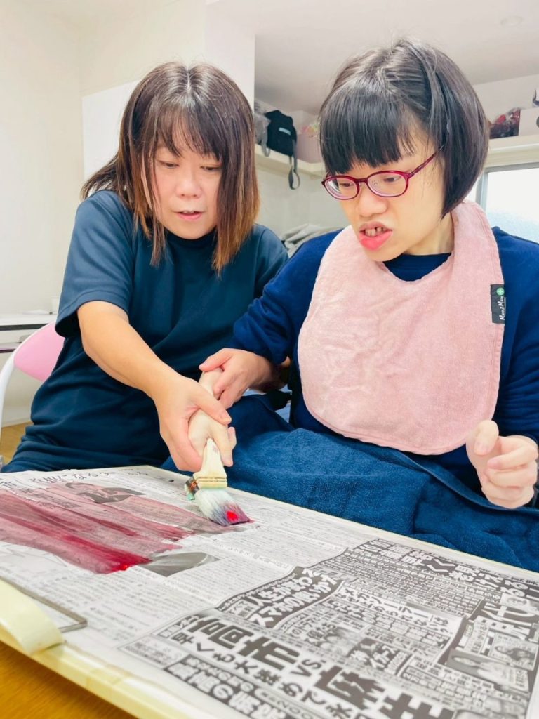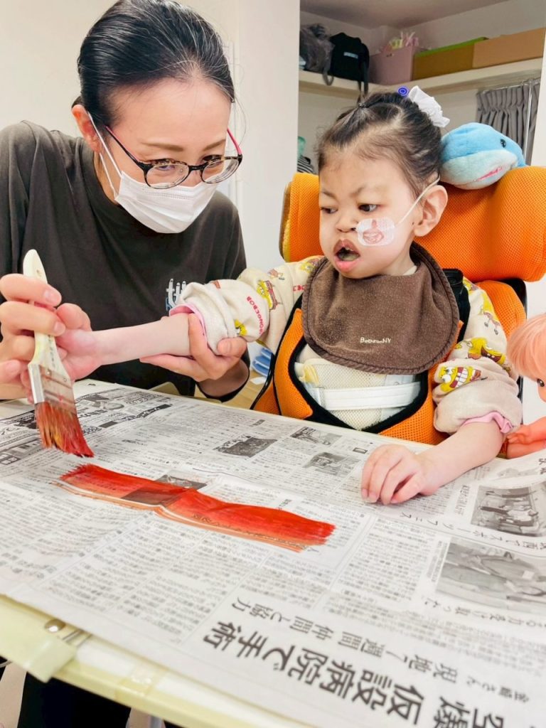 〇〇〇ちゃんは、赤紫色で新聞紙を塗っていこう!