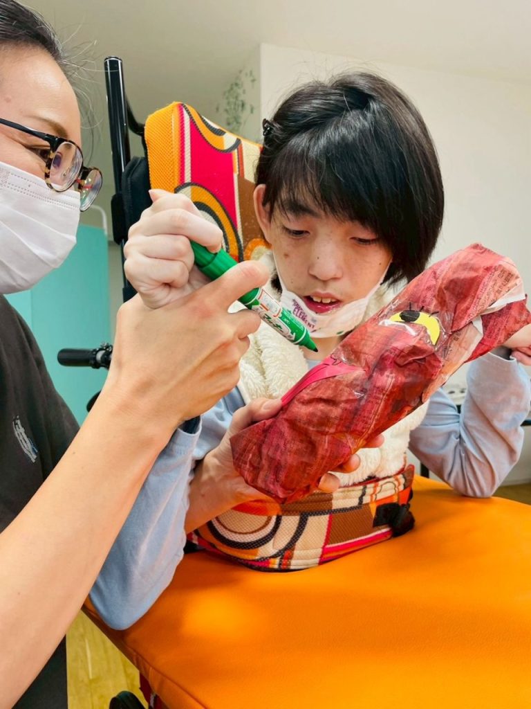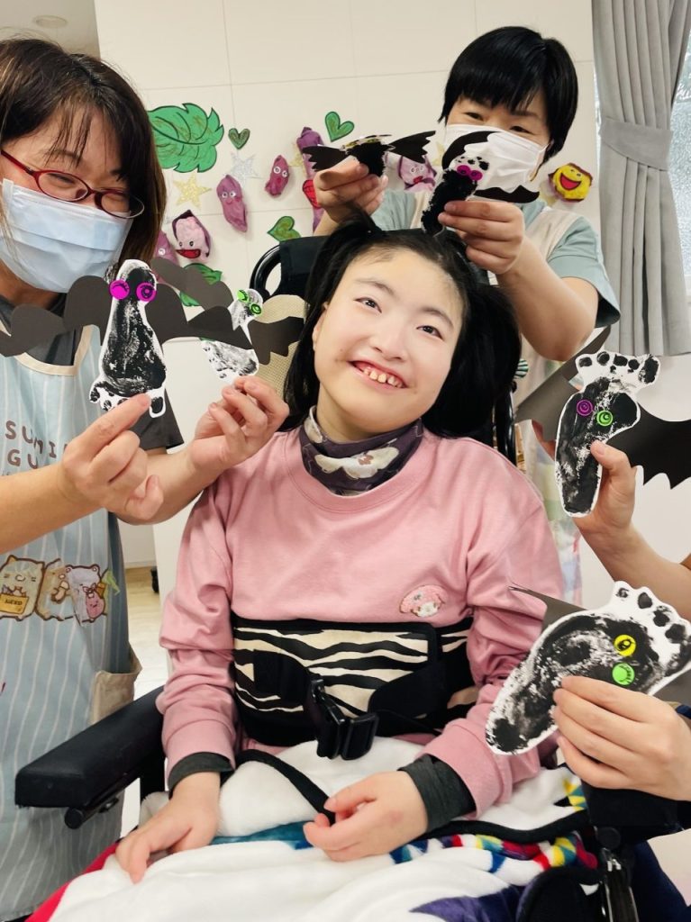 2024年は、ご利用者様たちの足形コウモリを作り☆