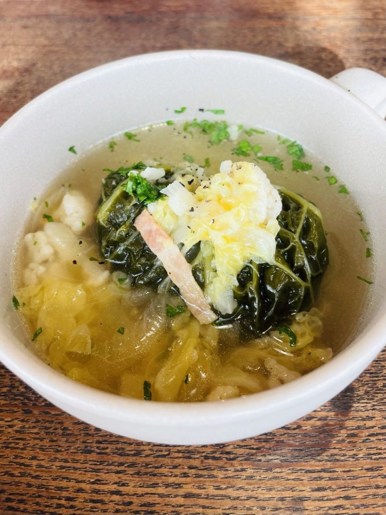 ◯ロールキャベツとカリフラワーの玉ねぎ麹スープ