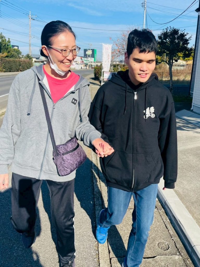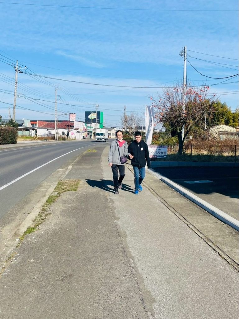 個別活動で冷たい空気を感じながらウォーキングを1日2〜3回取り入れている〇〇〇君!