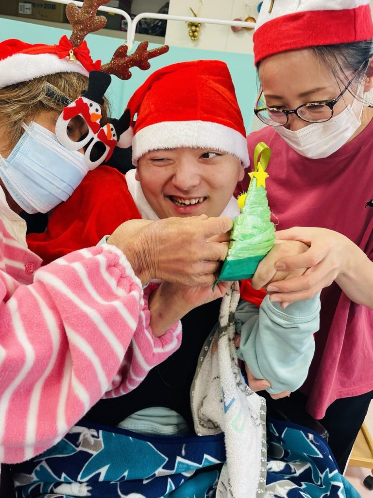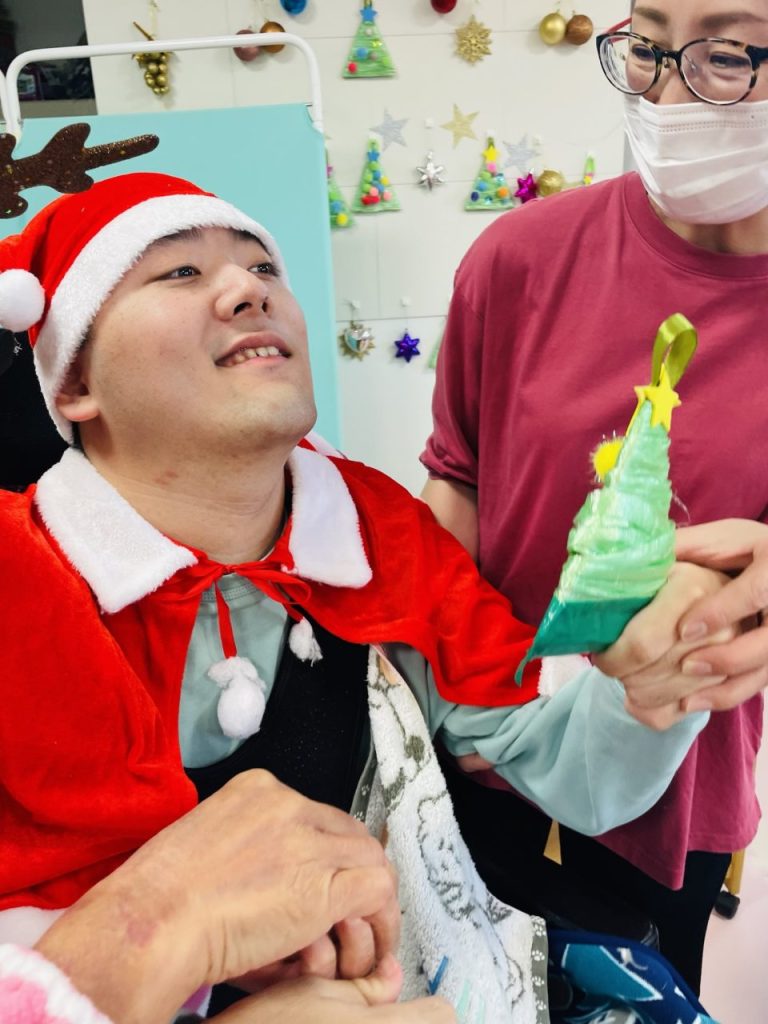 壁面にクリスマスツリーを飾ってくれたおかげで、部屋全体が華やかで温かいクリスマスを味わうことが出来ました♡