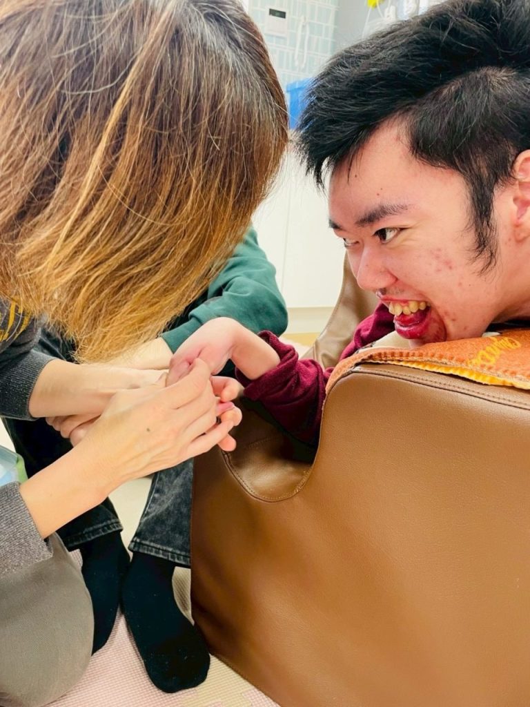 馬を見立てた手形にするために茶色の絵の具を塗るからね!