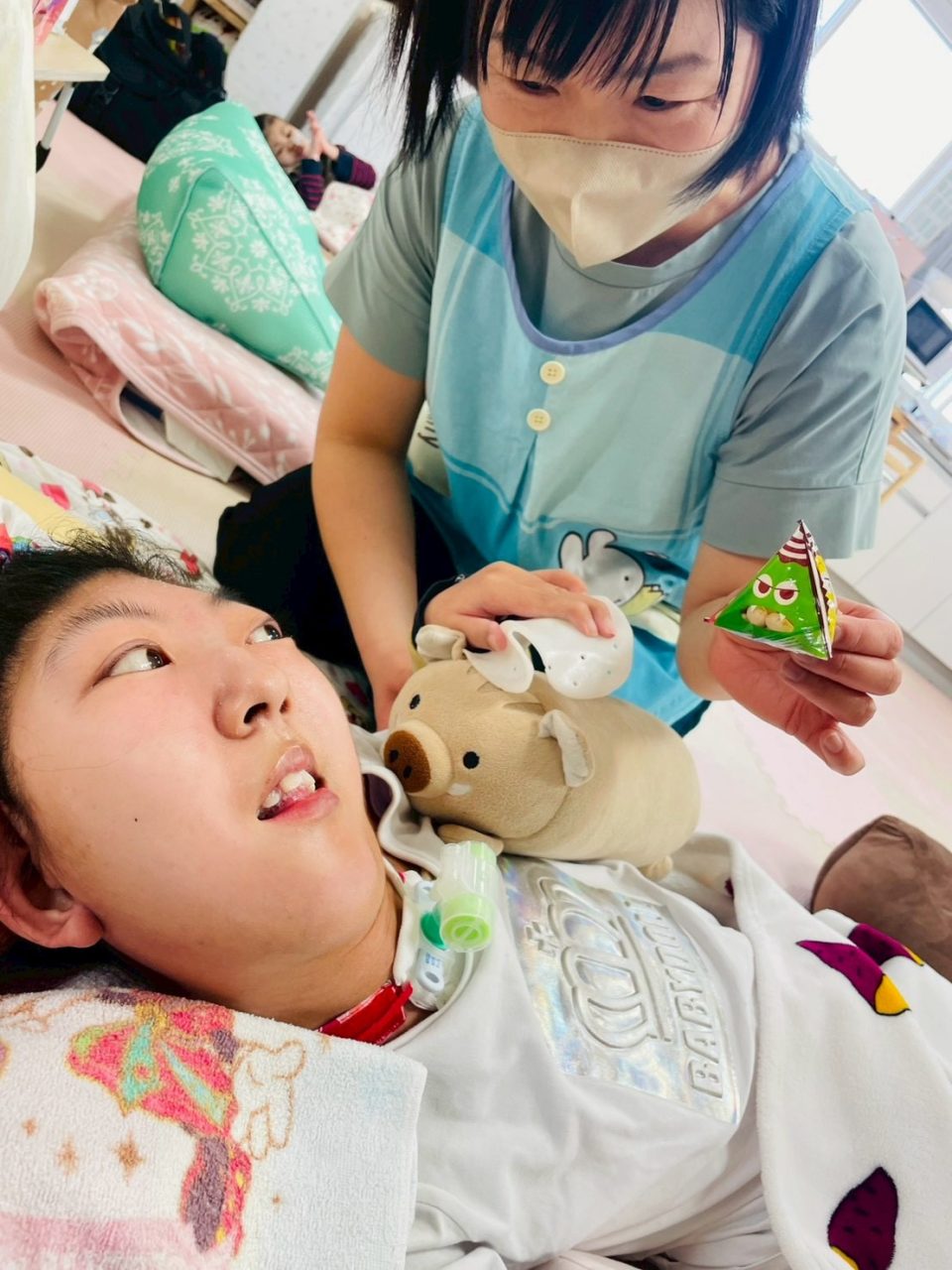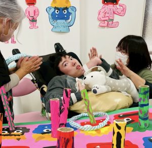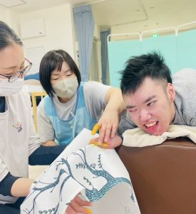 うつ伏せの姿勢で取り組んでくれた〇〇〇君!