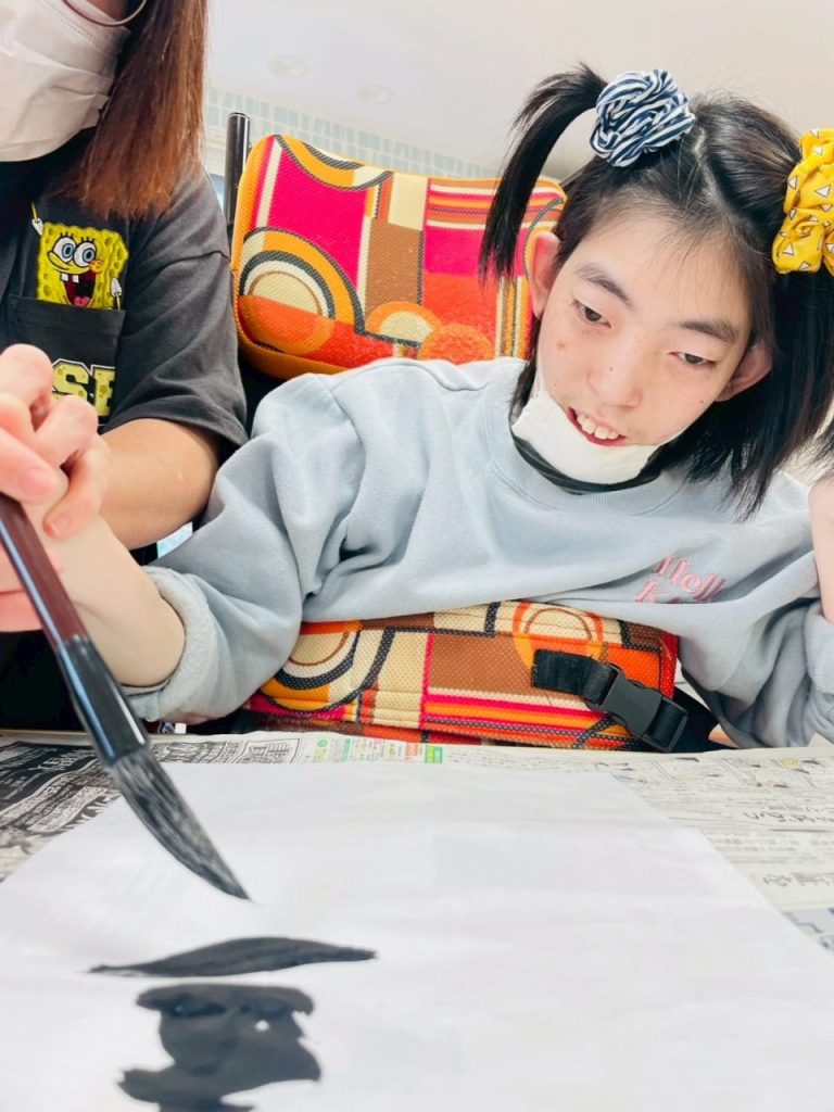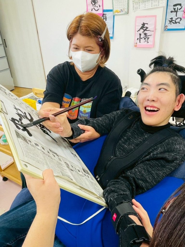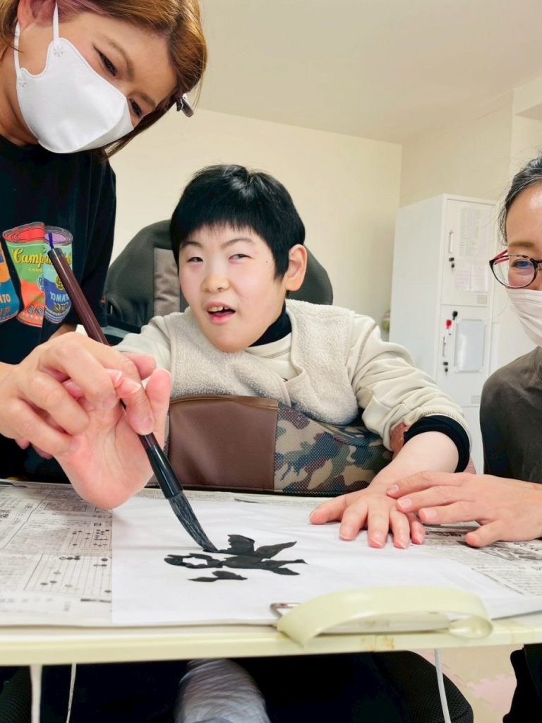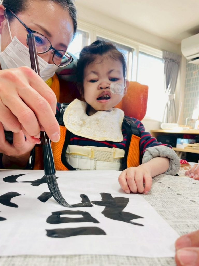 2人ともわくわく明るい表情で筆を握りしめます♡
