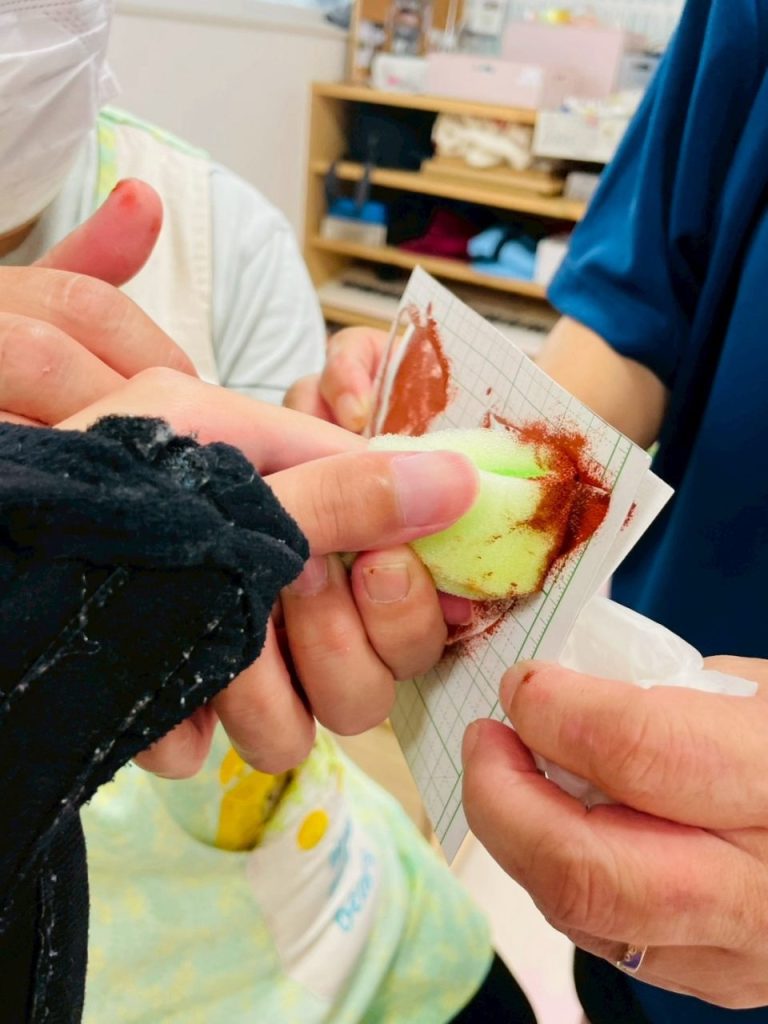 スポンジを握ってポンポン♡