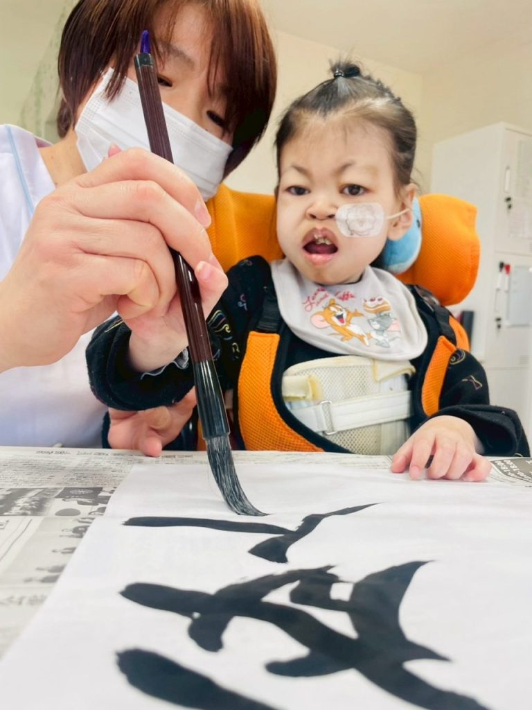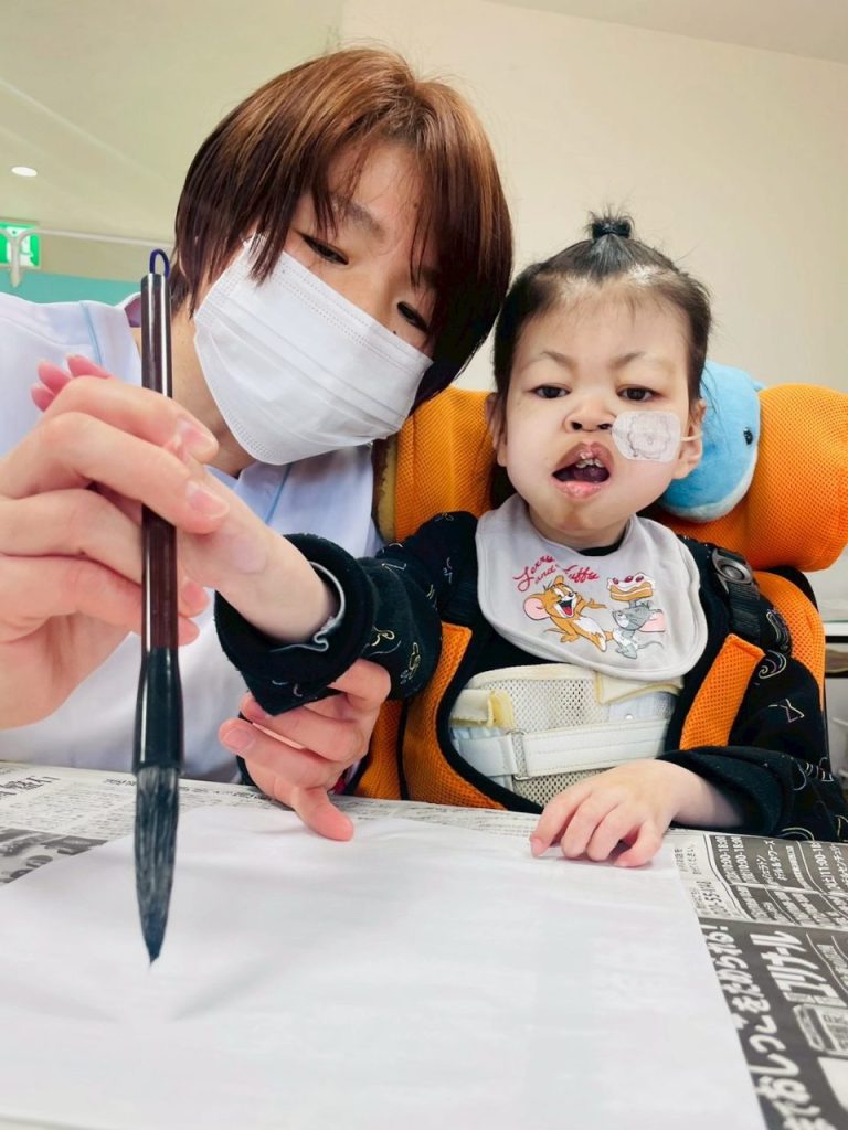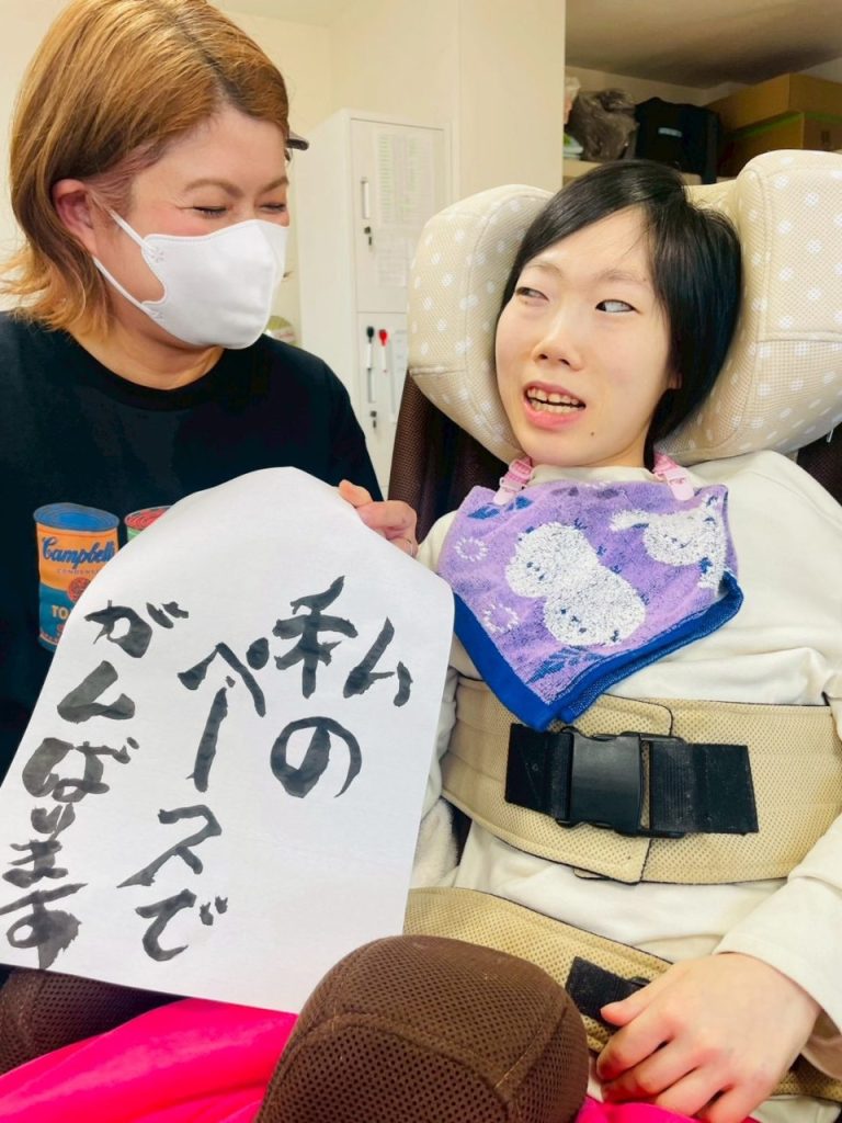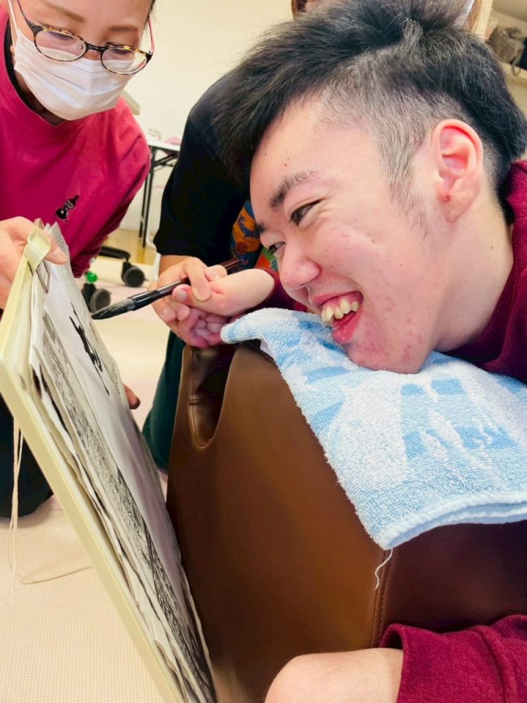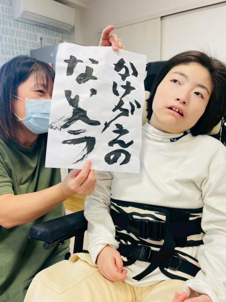 さぁ♡ 本日の活動は、成人お祝い会に向けて、ご利用者様一人ひとり「お祝いの言葉」を半紙に書きましょう。