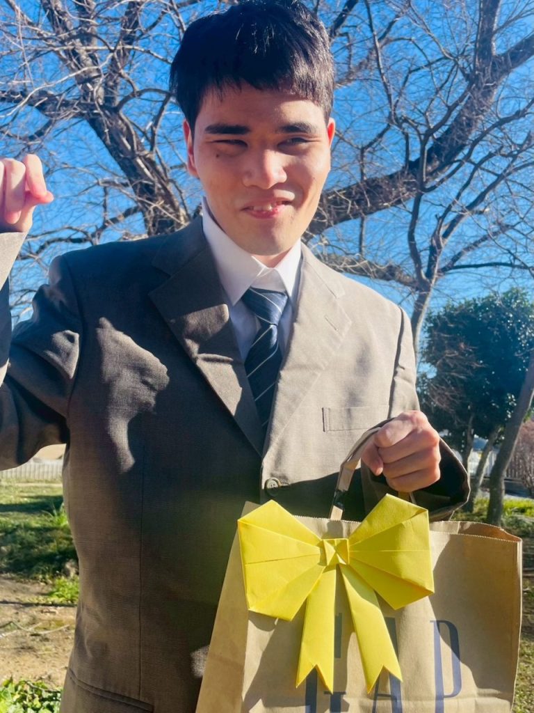 春を待つ木の前で、笑顔いっぱいの〇〇〇君♡