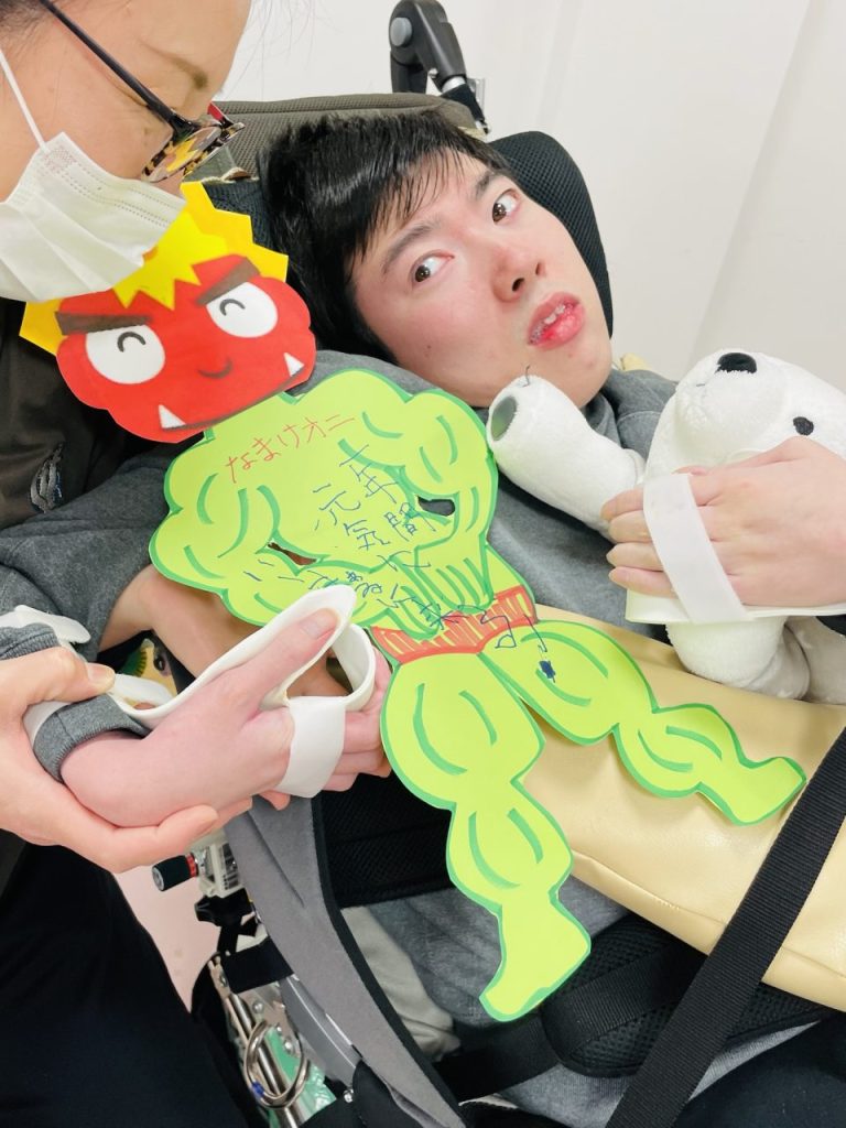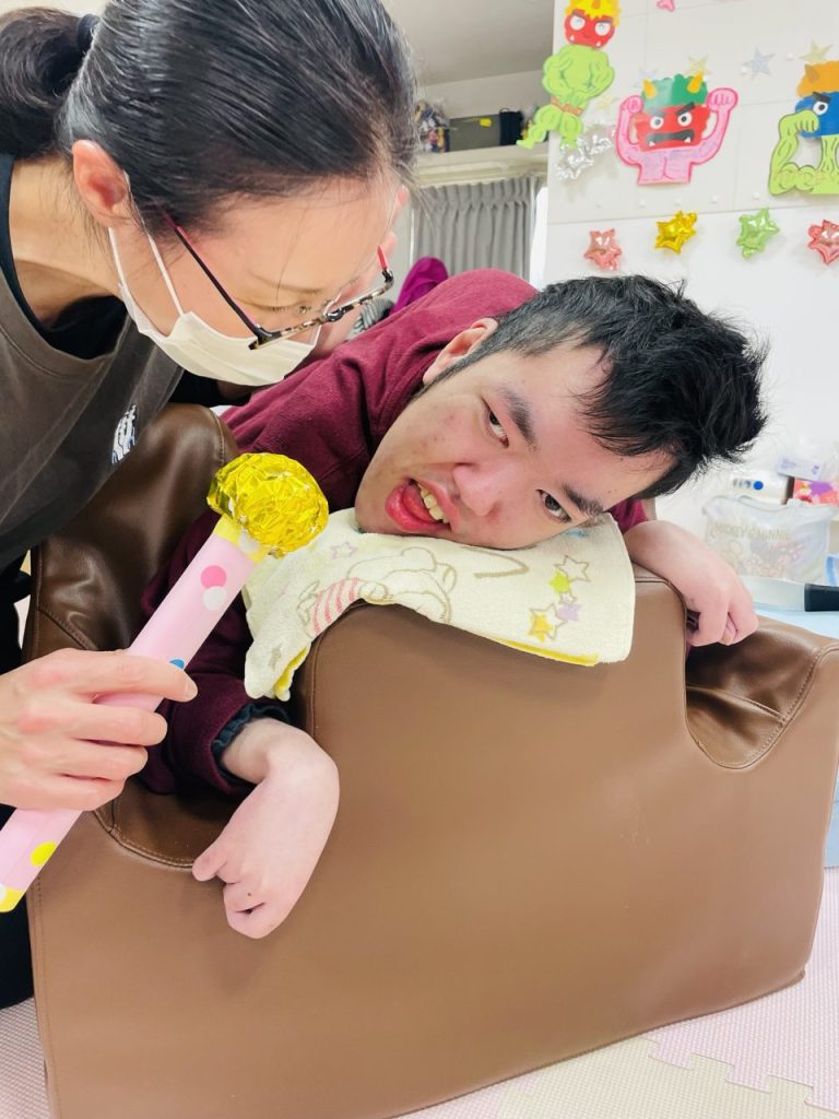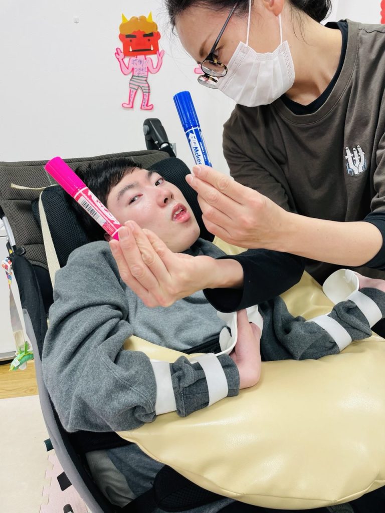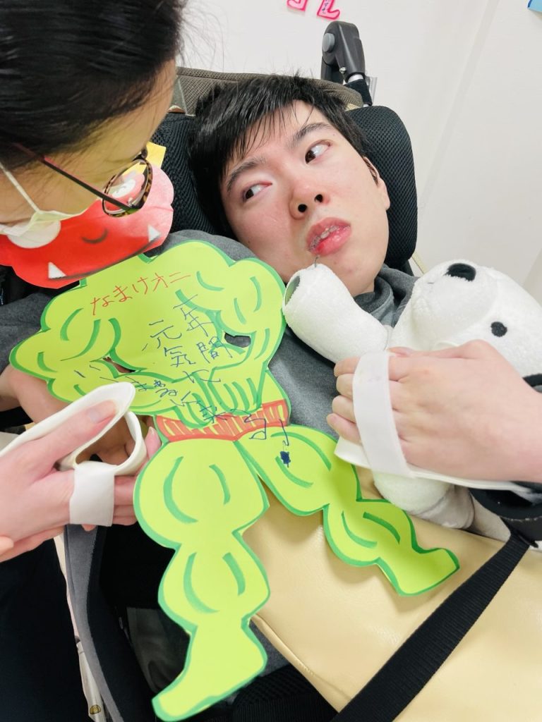 歓迎会が終わり、〇〇〇君は壁面の鬼制作を取り組んでくれました。