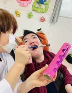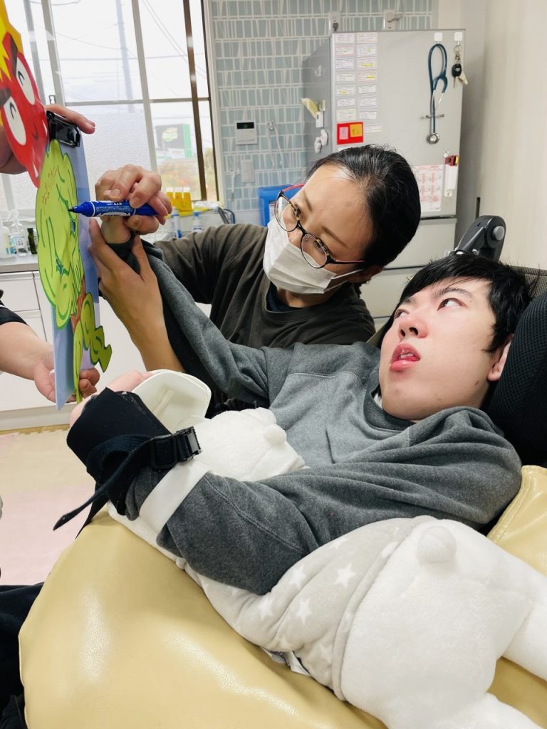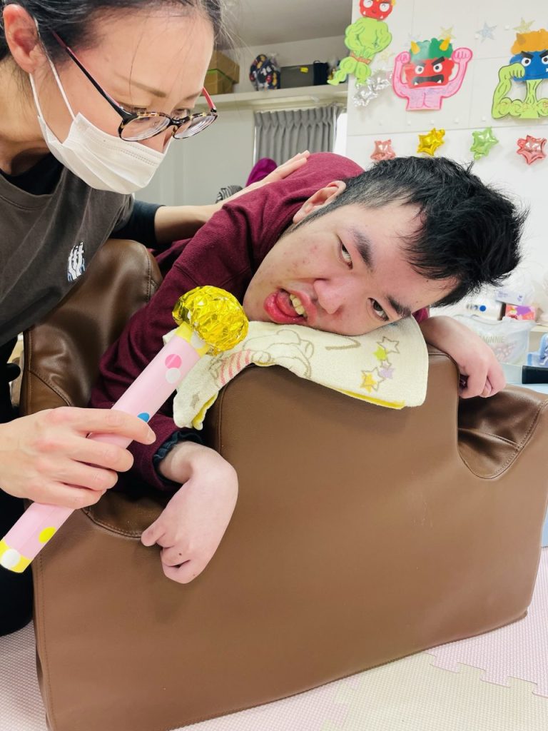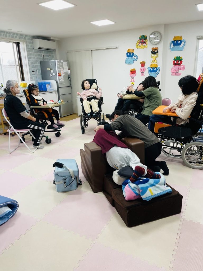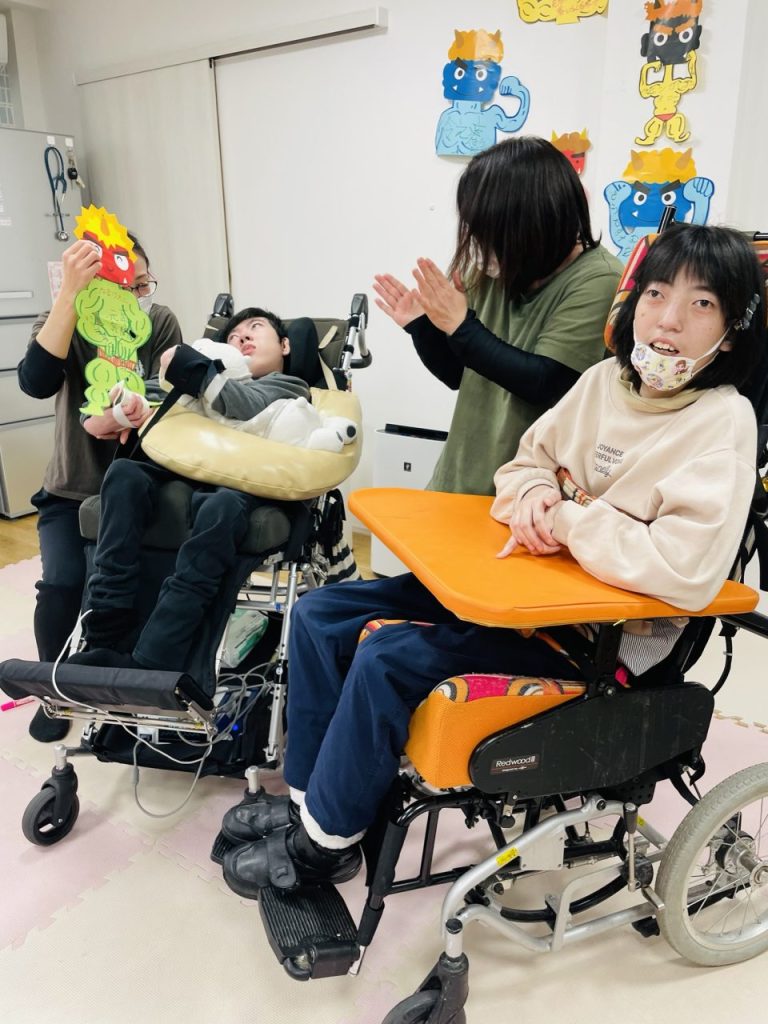歓迎会が終わり、〇〇〇君は壁面の鬼制作を取り組んでくれました。