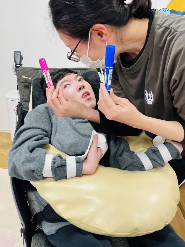 何色のペンで描くか、しっかり目線と表情で選んでくれました♡