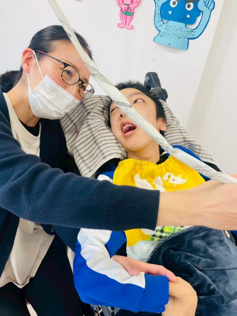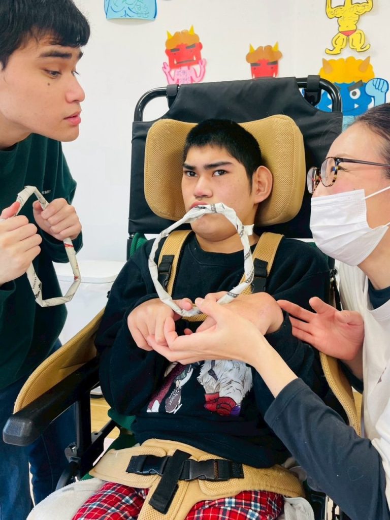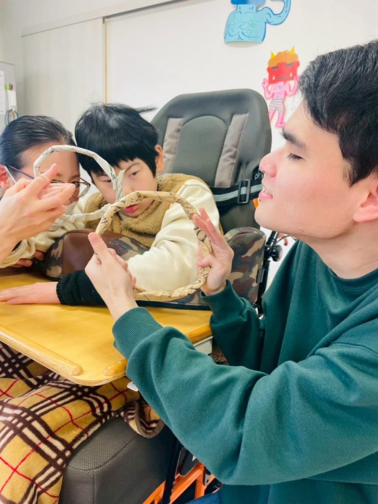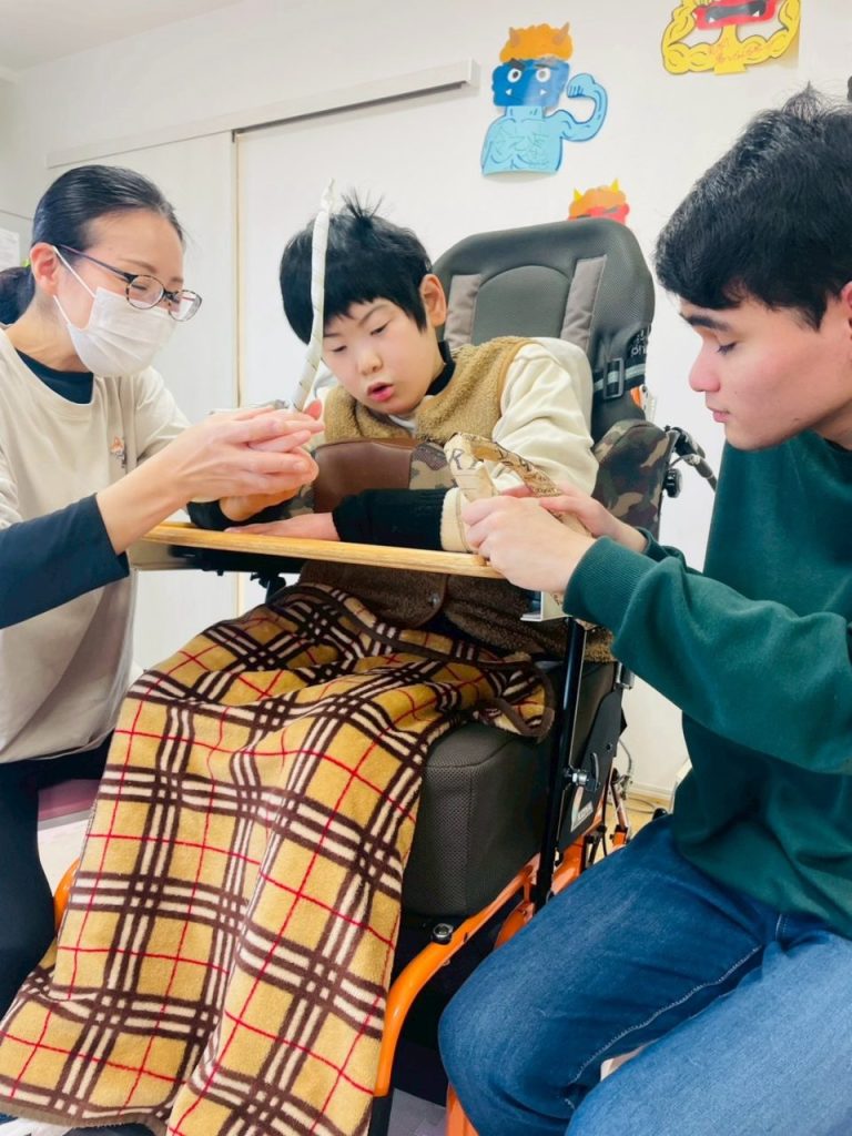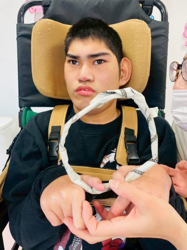続いて、〇〇〇君も輪っか作りに参加しました!