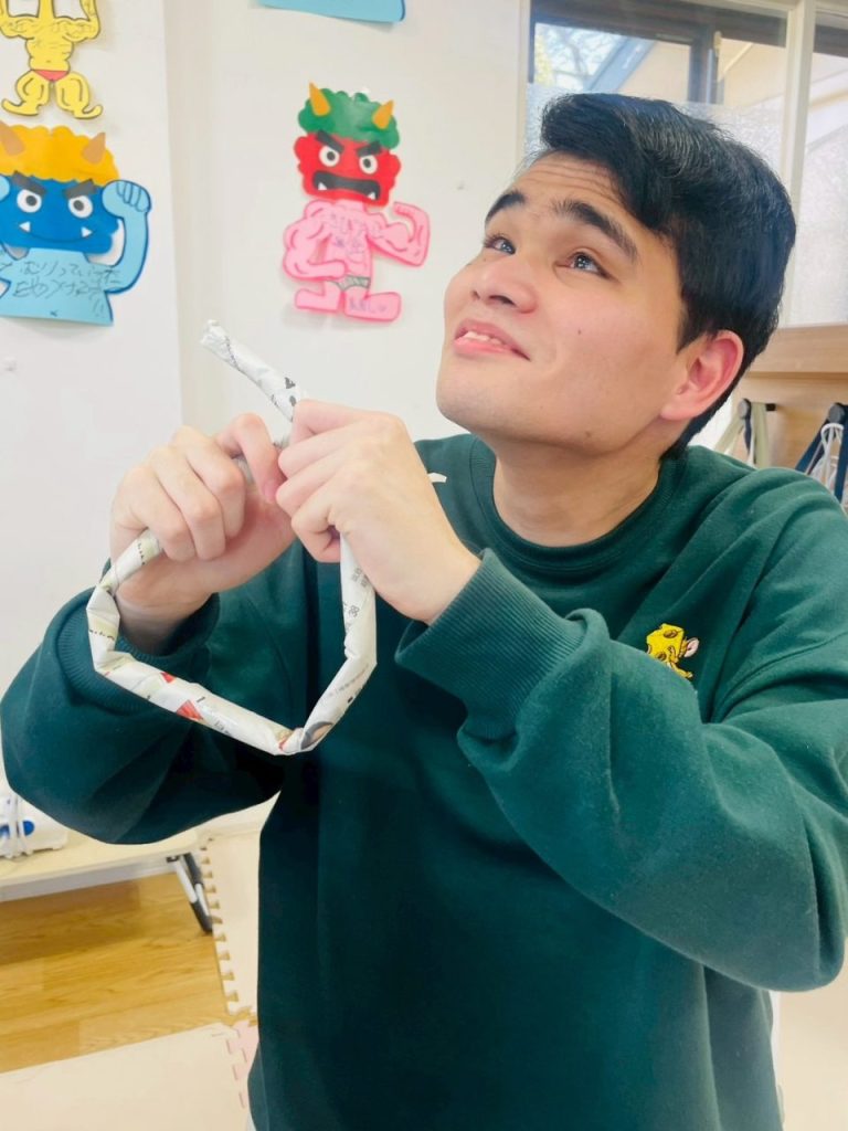 2月の節分遊びに使う輪っかを一緒に作ろうね♡
