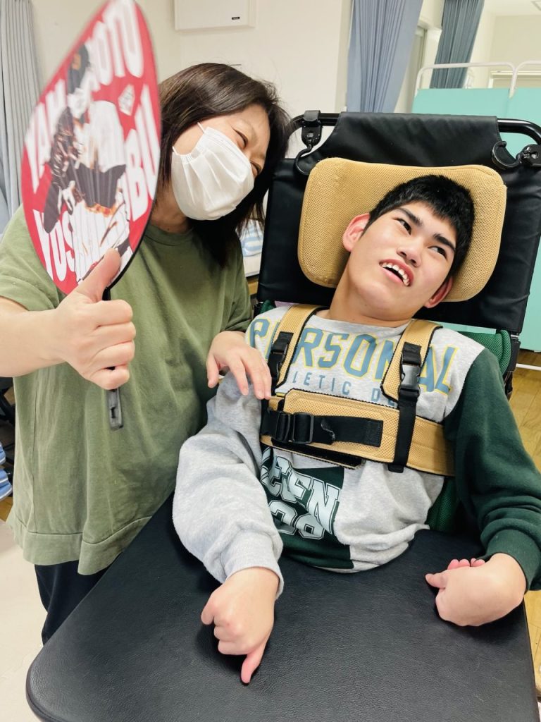 うちわを見た瞬間、思わず笑顔になる〇〇〇君!