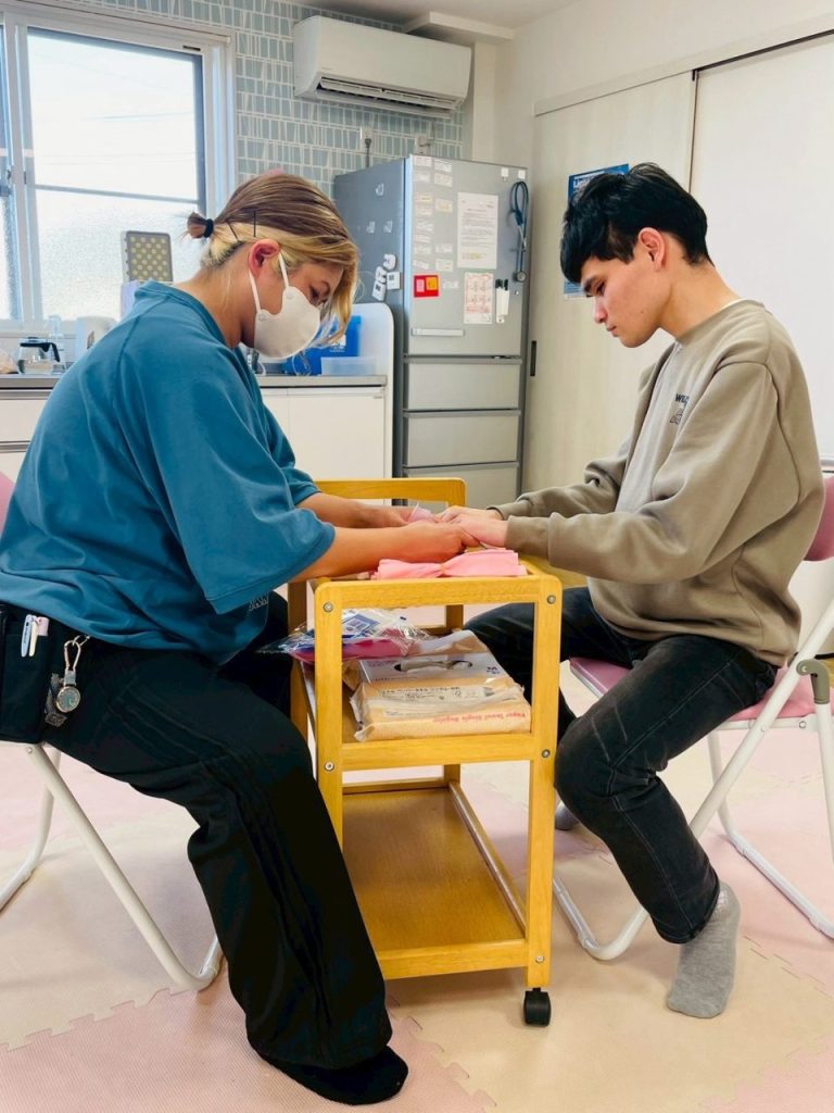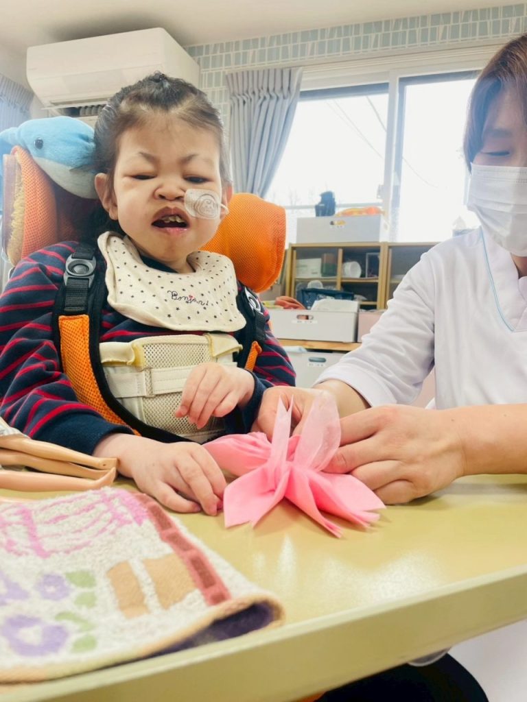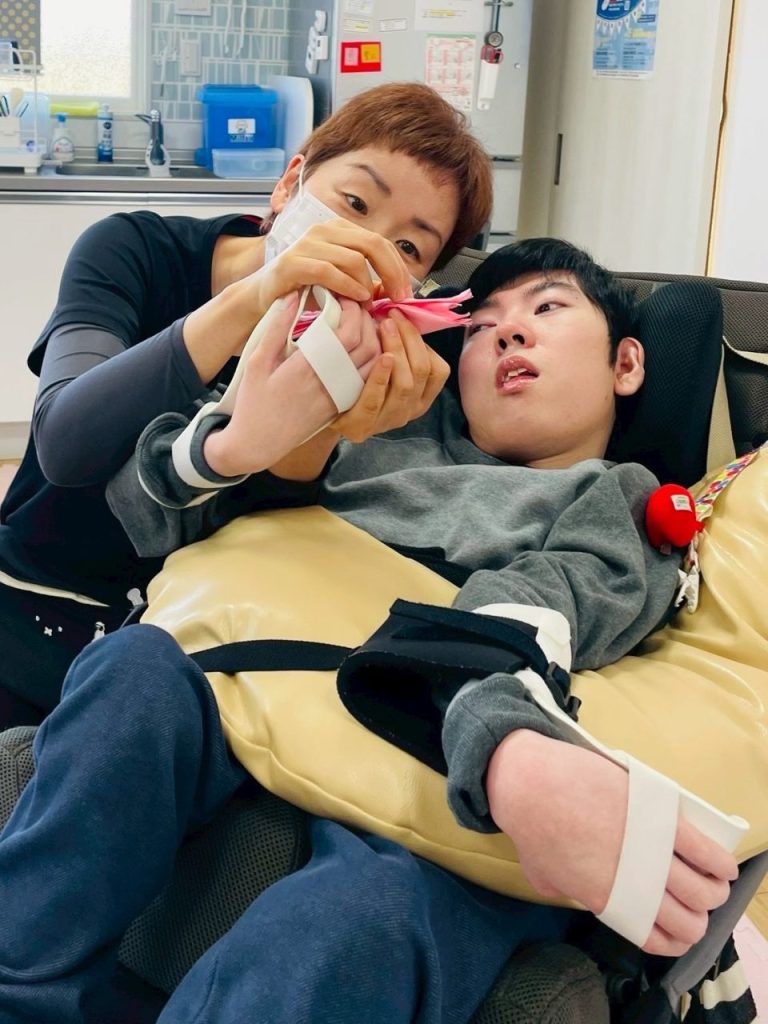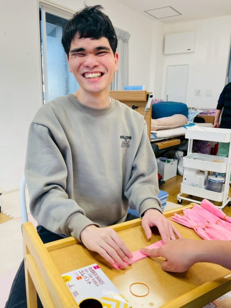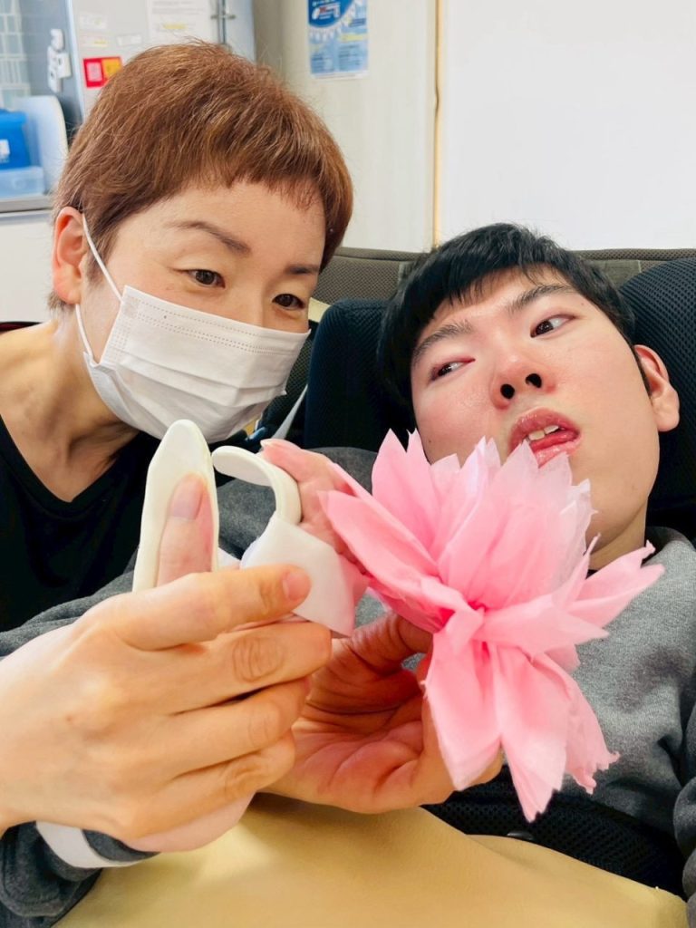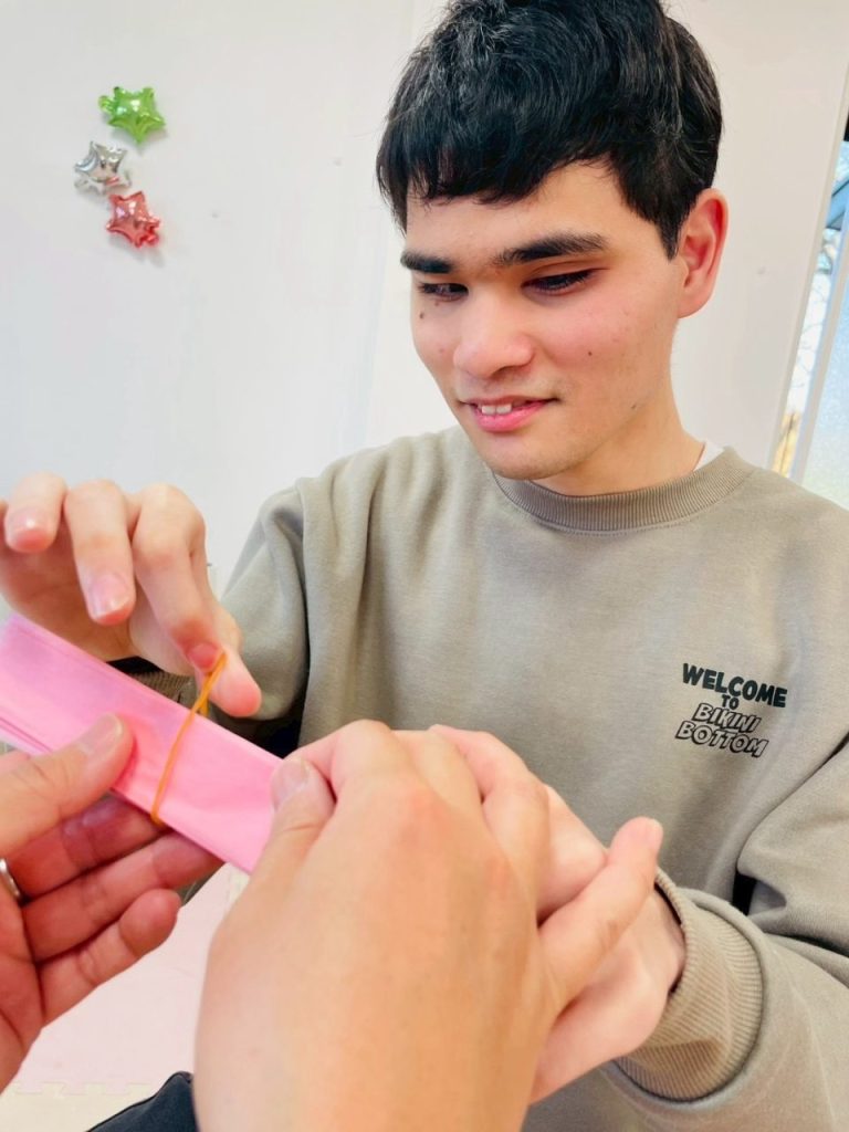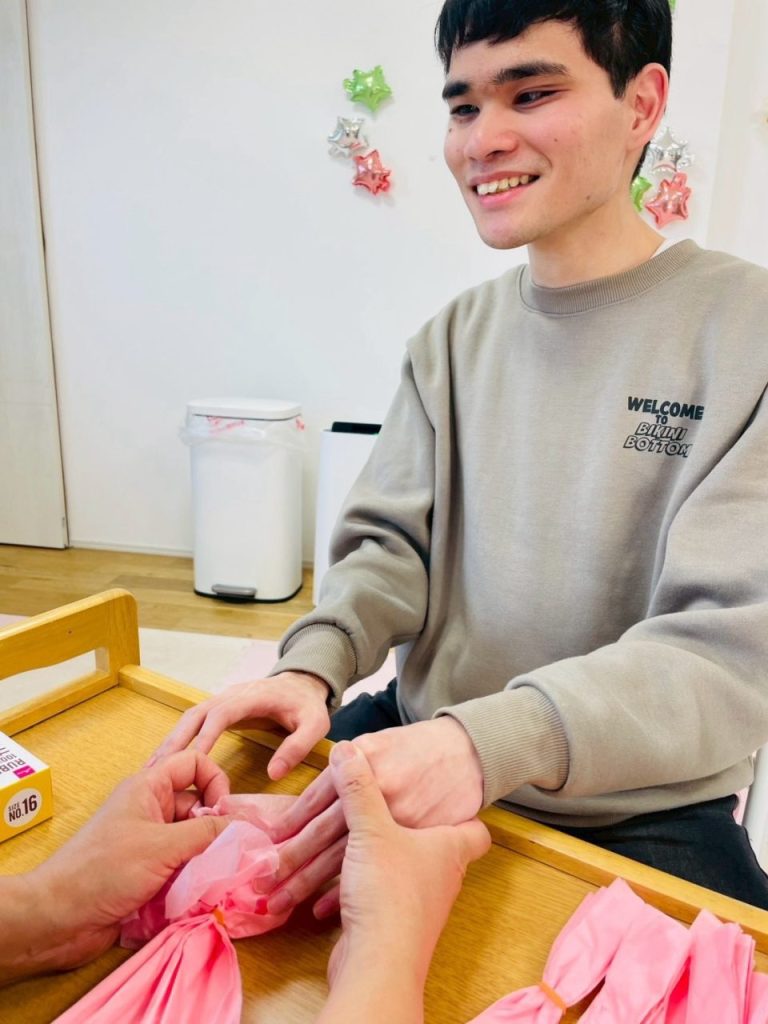 職員と一緒に、手元をよく見ながら落ち着いて取り組む様子が見られました。