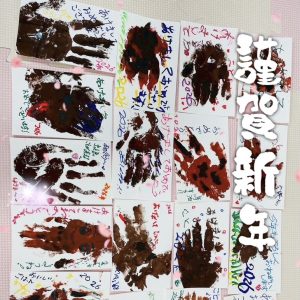 1月活動では、お正月福笑い・新成人のお祝い会・ジェンガ遊びに取り組みました!